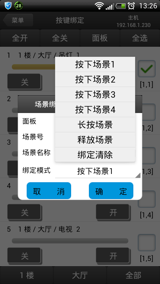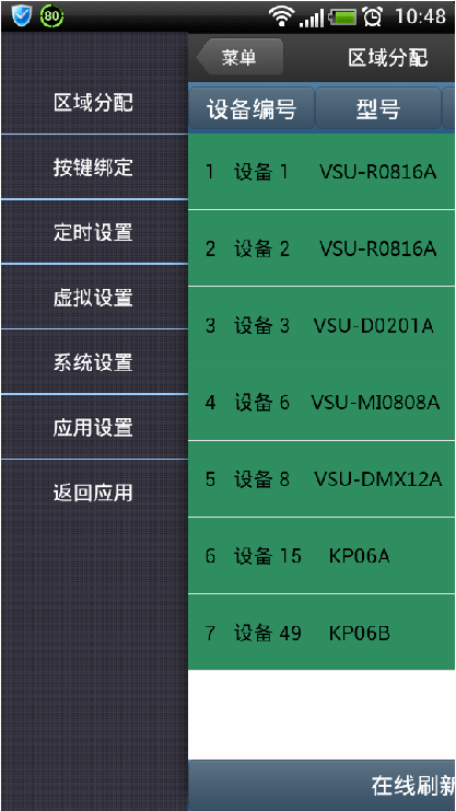 結(jié)合工程實(shí)際,VSU-GW64主機(jī)與基于VSU-NET總線的VSU-R0816A執(zhí)行模塊、面板、觸屏等組成智能照明控制系統(tǒng),通過我們提供的免費(fèi)安卓版配置軟件,可以輕松實(shí)現(xiàn)按鍵綁定、場景設(shè)置、定時(shí)等配置及控制。