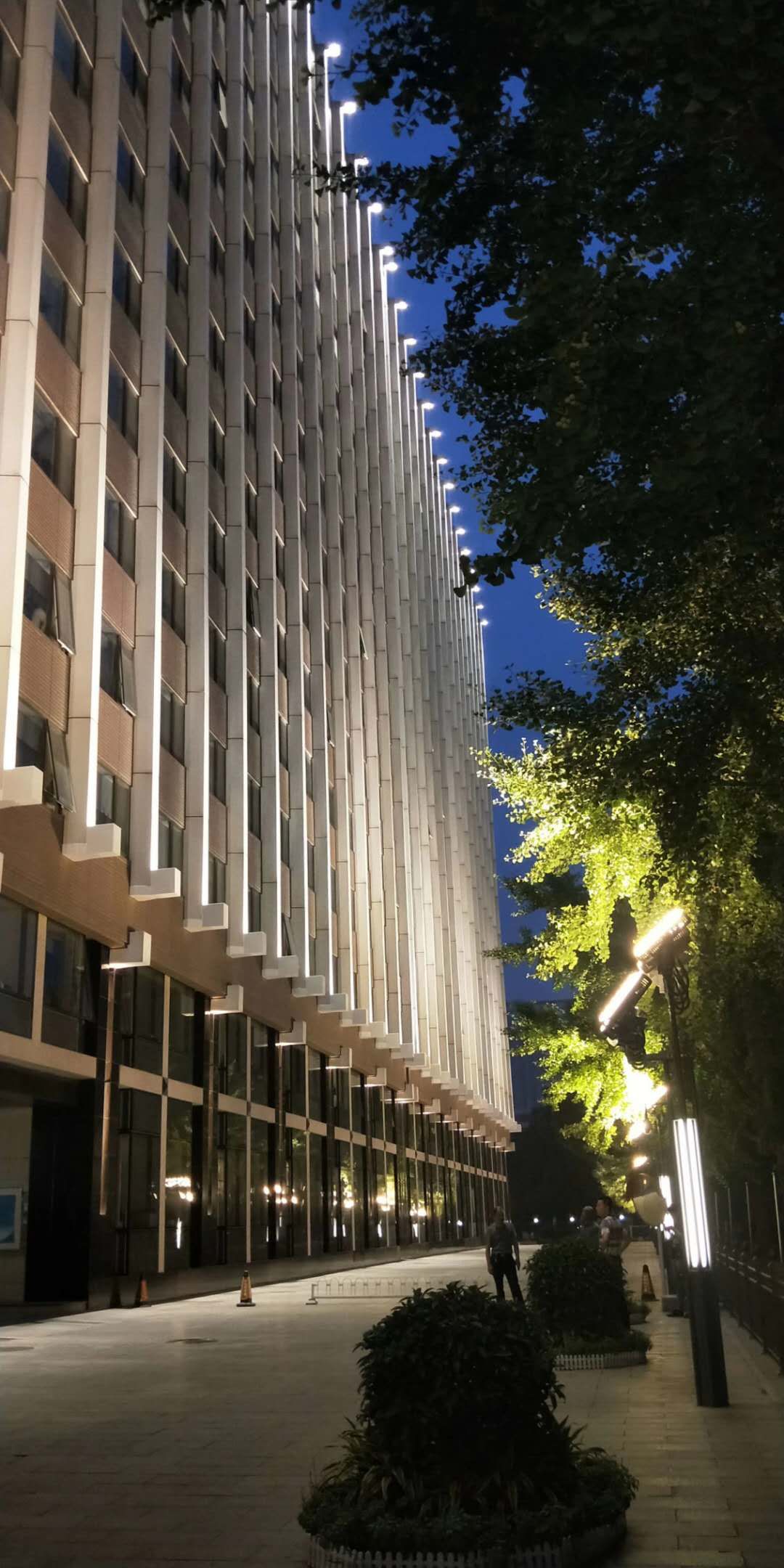 設(shè)置不同的場(chǎng)景模式可以讓夜色中的照明無(wú)需再在長(zhǎng)時(shí)間內(nèi)保持同一種過(guò)高的亮度照明需求,那樣所產(chǎn)生的電量也是沒(méi)有必要的。利用調(diào)光模塊可根據(jù)時(shí)間人流量大小來(lái)設(shè)定亮度,一鍵切換,方便快捷。下圖是社會(huì)科學(xué)院在夜色中的照明亮化。