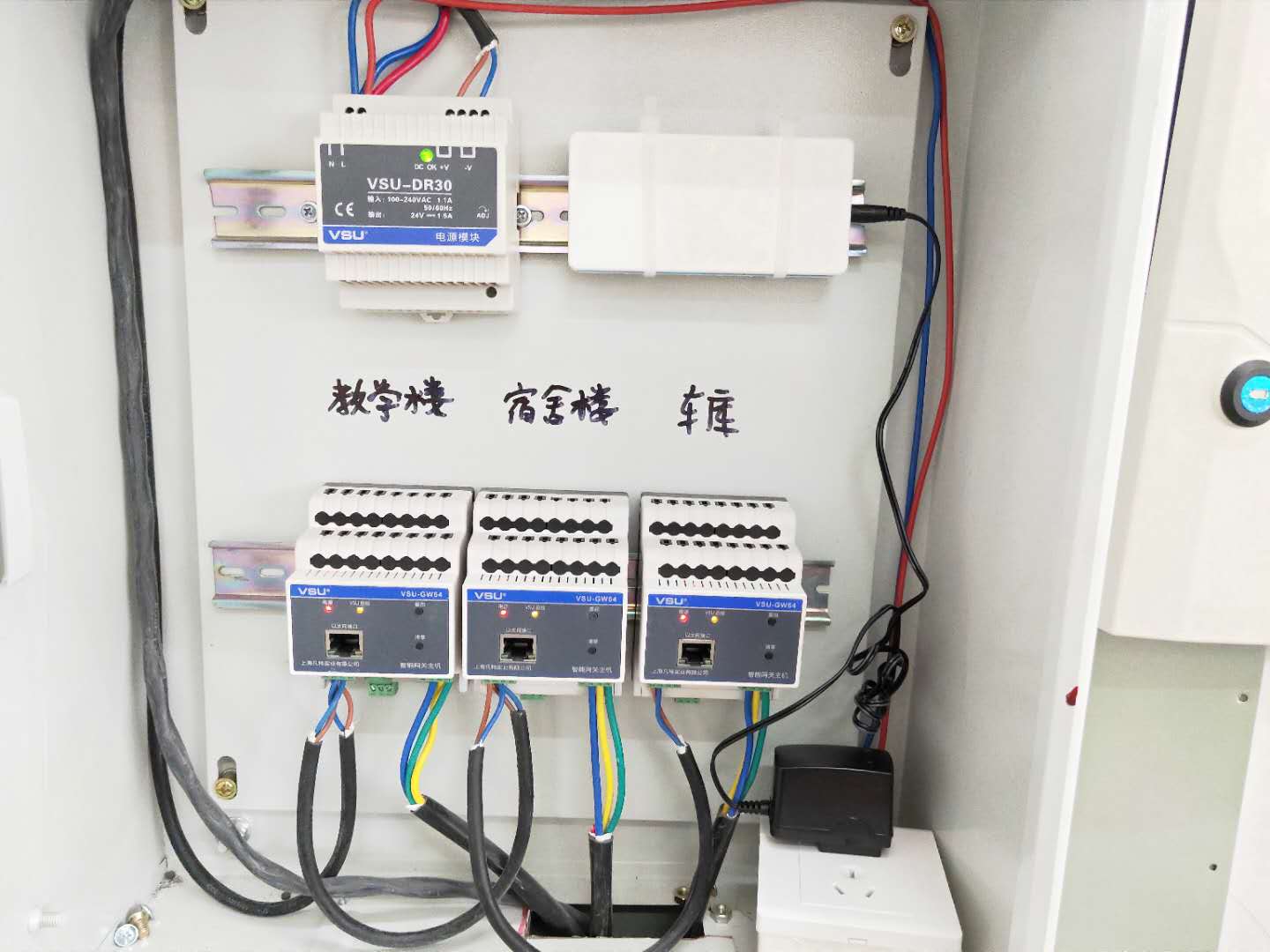 如上圖所示教學(xué)樓、宿舍樓、車庫等地分別配了一只智能網(wǎng)關(guān)模塊。