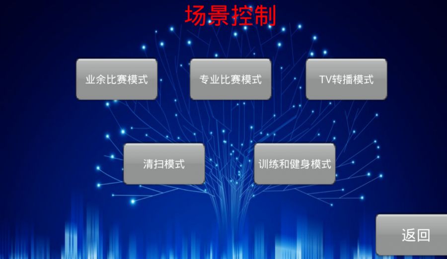 另外還可以直接通過面板切換專業(yè)比賽模式、業(yè)余比賽模式、TV轉(zhuǎn)播模式、清掃模式、訓練和健身模式、全開和全關(guān)模式等不同的燈光場景。(效果如下圖)