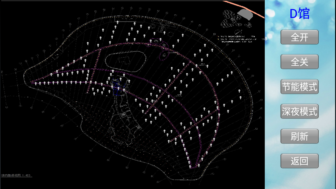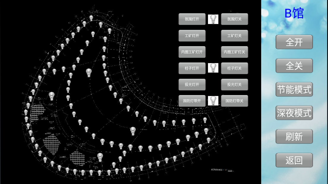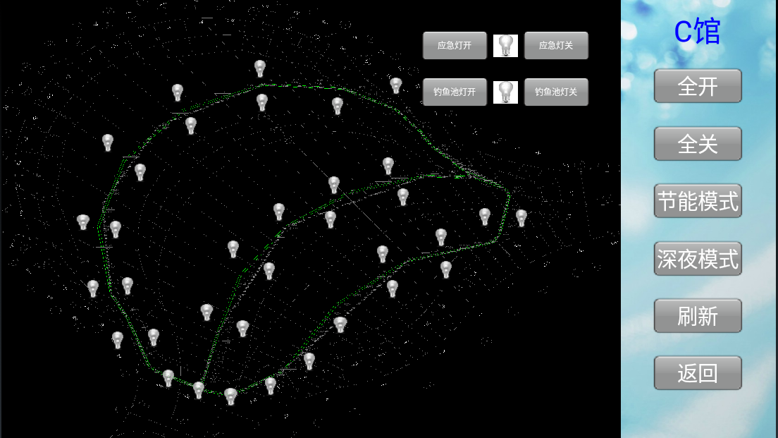 智能照明控制系統(tǒng)對各個場館內(nèi)的照明納入到統(tǒng)一的系統(tǒng)平臺進(jìn)行集中管理,實(shí)現(xiàn)一鍵全開全關(guān),游樂園可根據(jù)不同節(jié)日預(yù)設(shè)不同燈光場景,增添假日氣氛,也可根據(jù)客流量預(yù)設(shè)燈光(如下圖:節(jié)能模式),在保持照明需求以及氛圍感的同時,實(shí)現(xiàn)節(jié)能減排。
