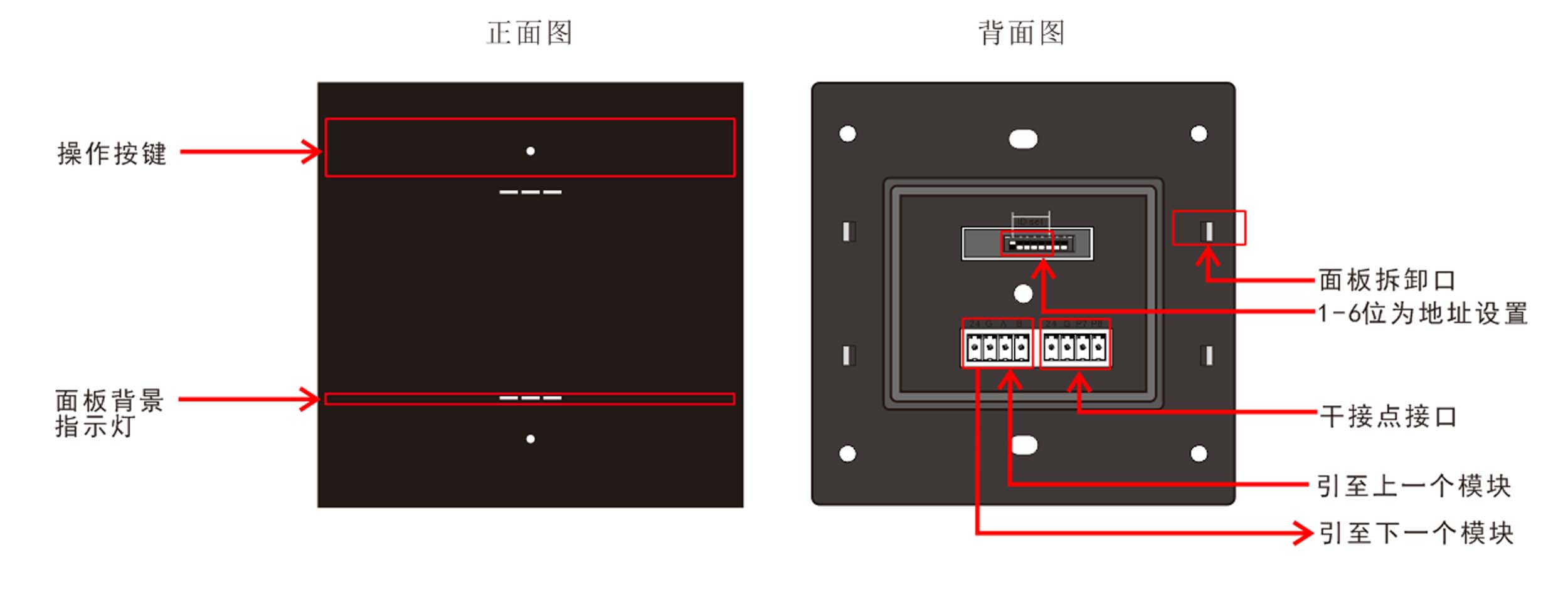 標(biāo)準(zhǔn)86底盒安裝,支持無(wú)縫聯(lián)接,提供2鍵,每個(gè)按鍵帶1路LED指示燈,復(fù)位式輕觸開(kāi)關(guān),結(jié)構(gòu)成熟,性能穩(wěn)定,標(biāo)準(zhǔn)工藝,采用塑料材質(zhì)(顏色可選灰色、黑色和香檳金);自帶感應(yīng)式背光燈;提供兩路IO輸入可外接傳感器。