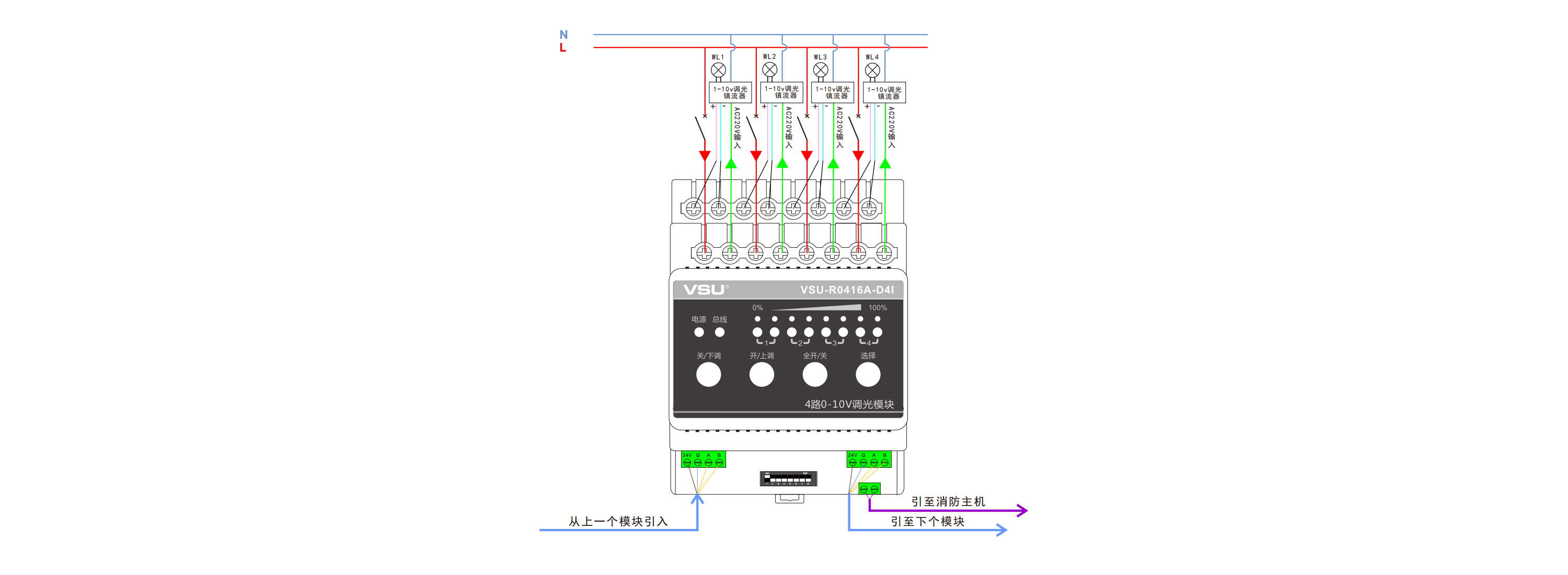 2,提供4路16A繼電器開關和4路0-10V調(diào)光信號;